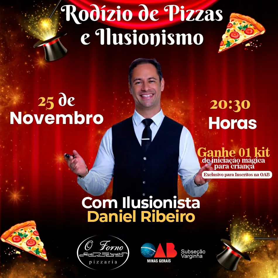 O Vice-Presidente da Subseção, Dr. Daniel Brandão, aproveitou o momento para parabenizar o Mágico Daniel Ribeiro pelo espetáculo brilhante, além de justificar a ausência da Presidente, Dra. Shirley Teodoro, devido a compromissos previamente agendados.