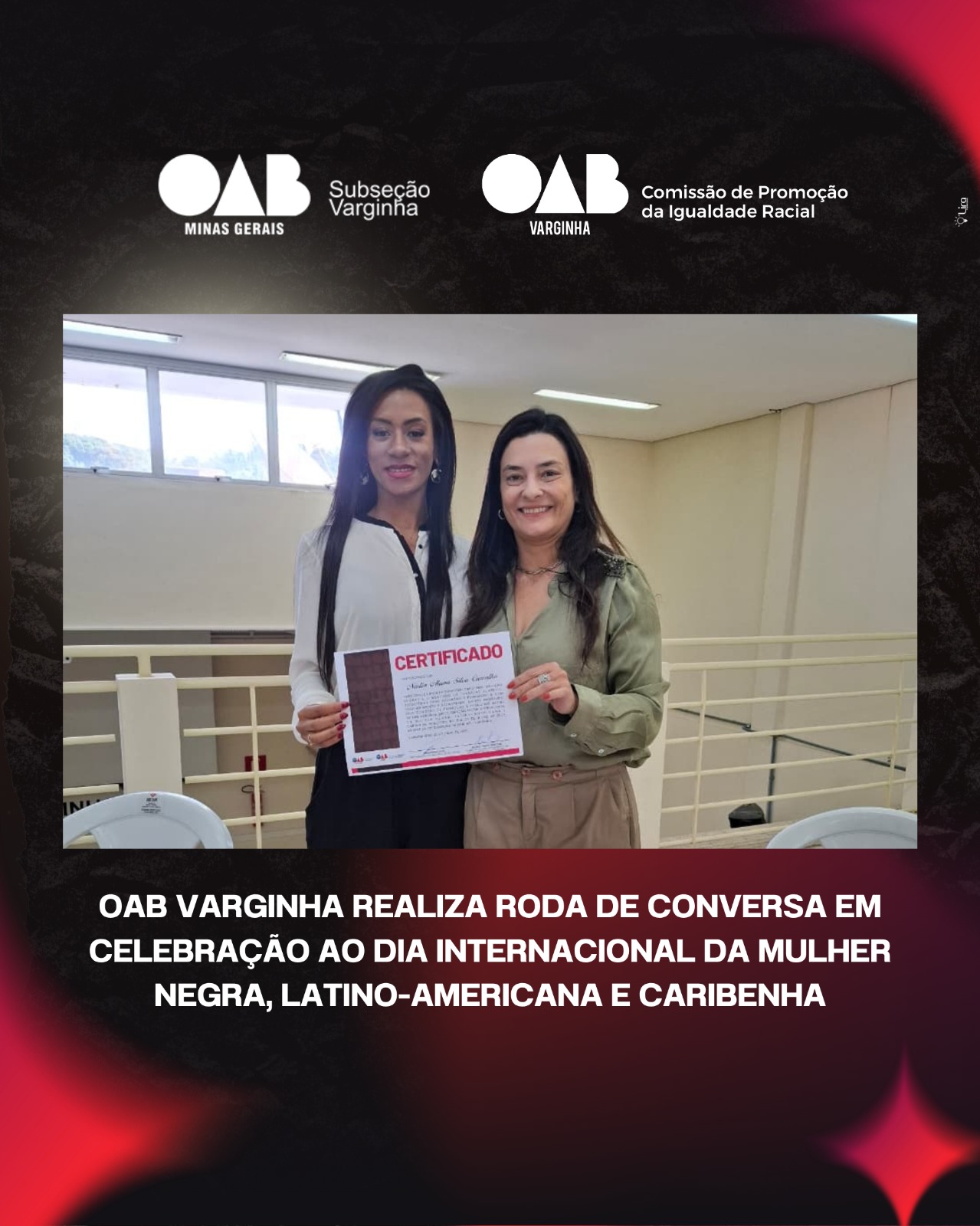 OAB Varginha realiza roda de conversa em celebração ao Dia Internacional da Mulher Negra, Latino-Americana e Caribenha