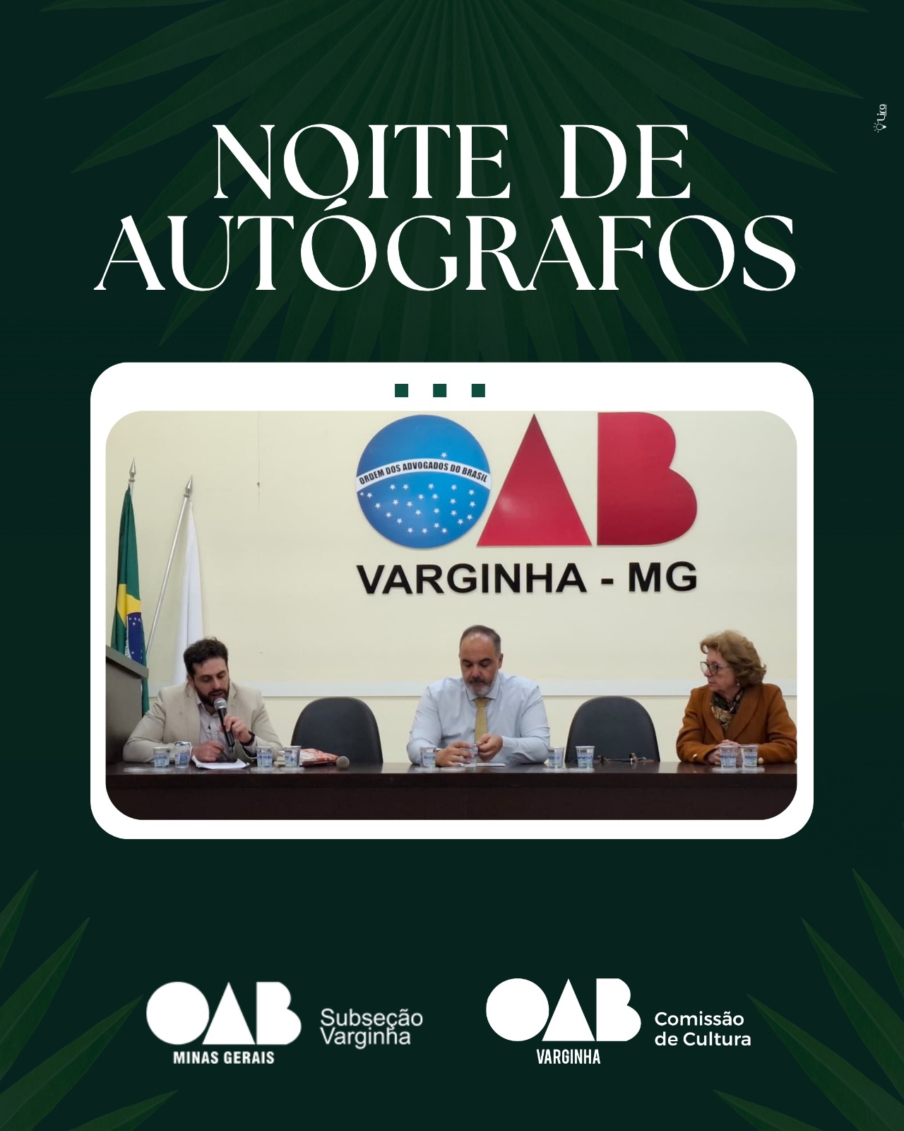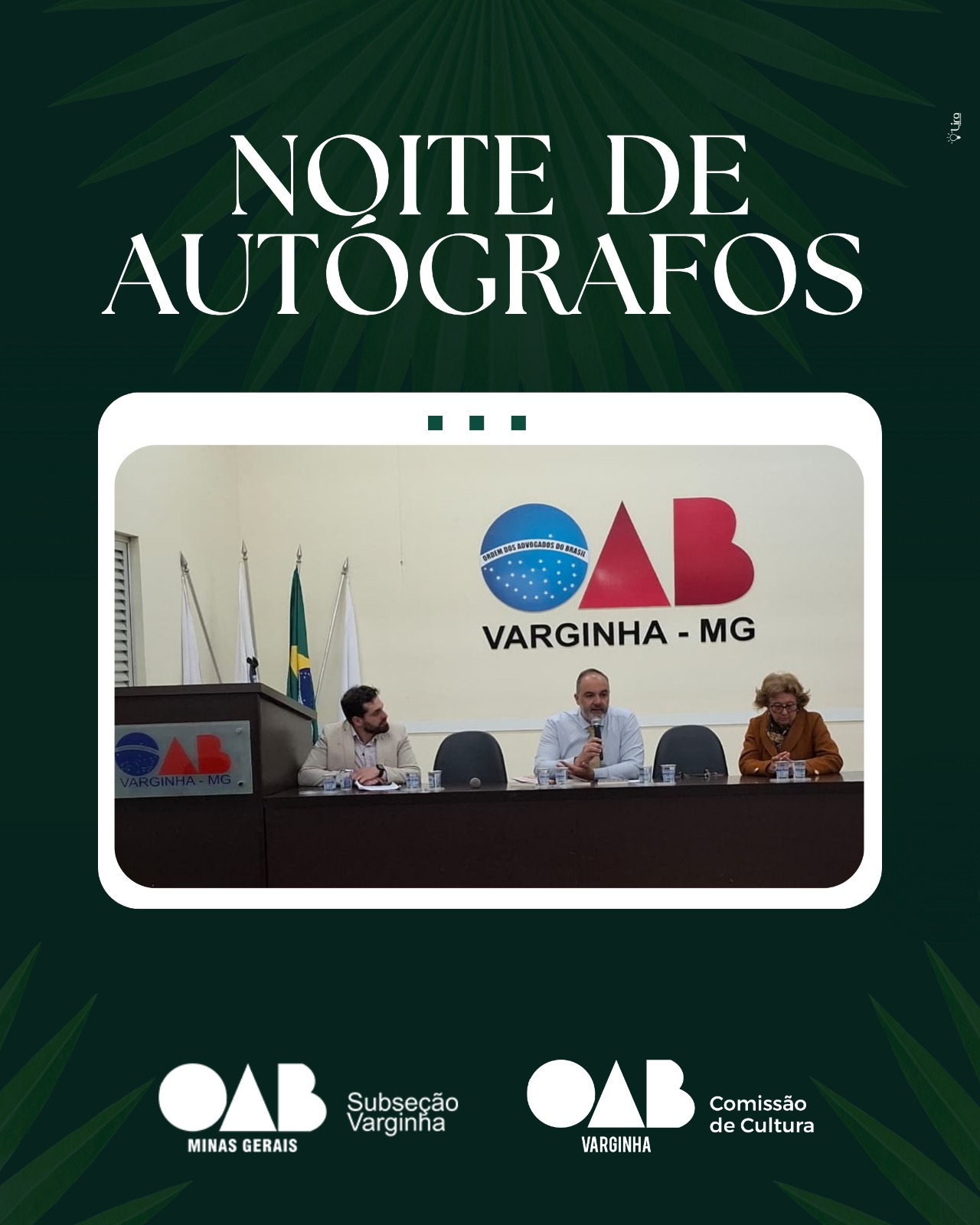 A Noite de Autógrafos reforça o compromisso da OAB Varginha em apoiar e difundir manifestações culturais, fortalecendo os laços entre a advocacia e a comunidade varginhense.