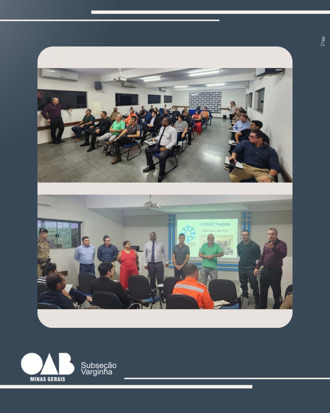 O presidente da OAB Varginha, Dr. Guilherme Maia, destacou a relevância da iniciativa e parabenizou todos os envolvidos na retomada das atividades do Conselho: “A segurança pública é um tema que deve ser construído de forma coletiva e participativa. A OAB Varginha agradece o convite e a presença do nosso atuante presidente da Comissão de Segurança Pública, Dr. Carlos Alberto da Costa, que tem representado com excelência a advocacia em pautas de grande importância para a comunidade”, afirmou Dr. Guilherme Maia.